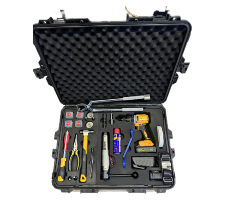 產(chǎn)品由專用特種鉆頭螺絲、鎖芯拔除器、鎖芯切斷器、換向扳手、專用電鉆、電池、充電器、鎖舌轉(zhuǎn)動(dòng)器、除銹潤滑劑、定位器、輔助工具、LED感應(yīng)照明燈及專用密碼工具箱等組成。